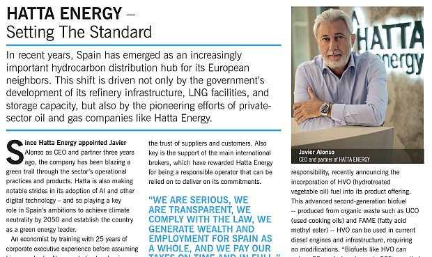 El reportaje, centrado en la trayectoria de HATTA Energy en España, destaca la apuesta de la compañía por la descarbonización y el uso de la inteligencia artificial, llevando a cabo un proceso de transformación que ha resultado en un crecimiento sin paragón en el sector de los hidrocarburos. Este posicionamiento merece para la influyente revista calificar a Hatta como “agente clave” del modelo energético español.